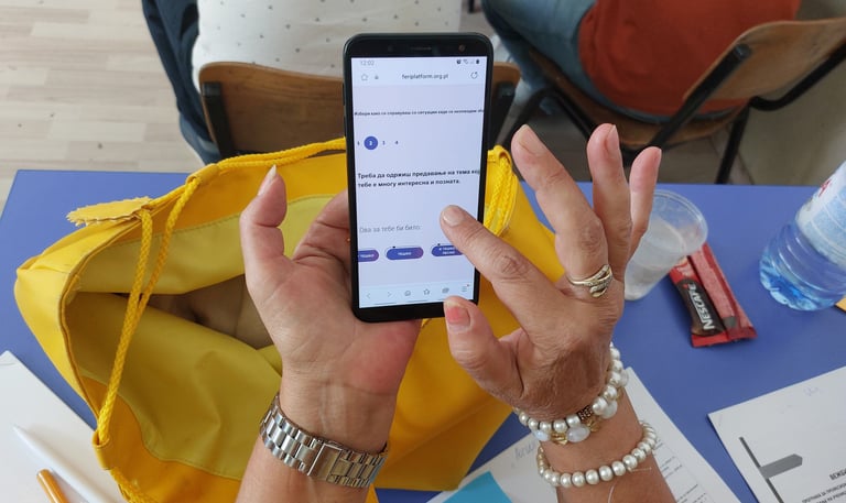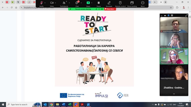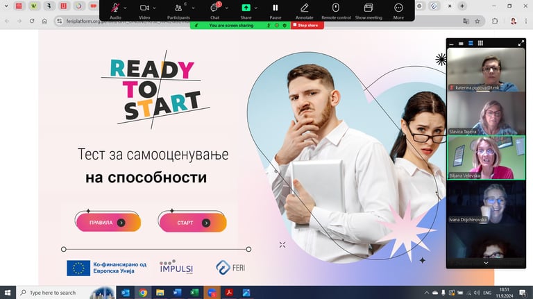 Participants had the opportunity to feel the process by being part of the self-evaluation process and working individually and in teams on different tasks. As part of the hands-on experiential learning process, they had a chance to try and test two digital decision-making games, available in Macedonian language, developed by our consortium, FERI and IMPULSI, under the scope of the project 'Ready to Start,' co-funded by the EU Erasmus+ program (Project number: 2023-1-PL01-KA210-VET-000153013).